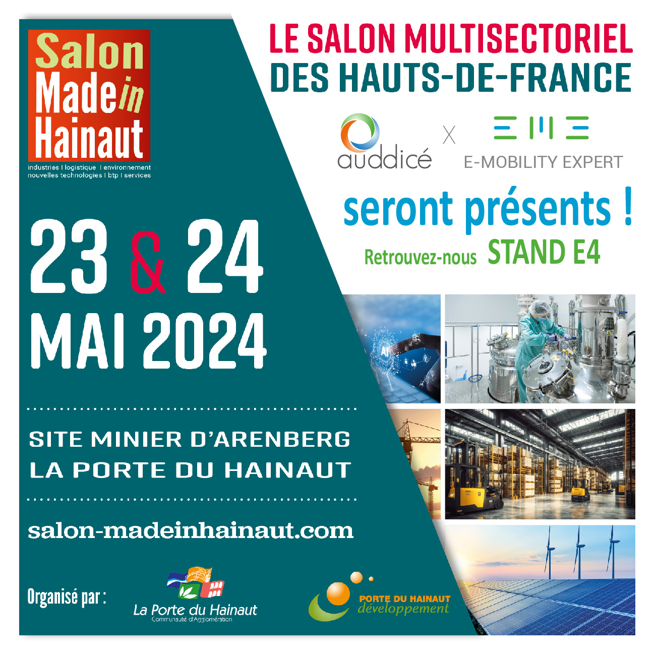 Du 23 au 24 mai, auddicé et sa filiale E-Mobility Expert seront présents sur le Salon Made in Hainaut au site minier d’Arenberg.
